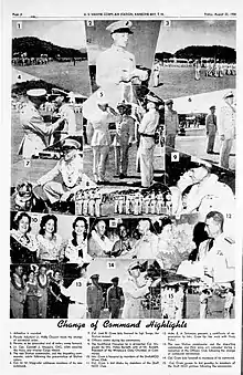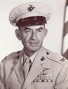 Arriving on May 14, 1945, at Yontan Field, the squadron was operational in 36 hours.[4] Magruder's squadron scored its first night intercepts on May 18, 1945 when two of his pilots conducted five radar assisted night kils.[5] On June 15, 1945, the squadron moved operations from Yontan Air Field to Charlie Air Strip, Ie Shima where they joined the rest of the squadron personnel and served out the remainder of the war. In spite of the fact that VMF(N)-533 arrived 40 days after the campaign for Okinawa began, with terrible weather throughout, "Black Mac's Killers" registered 35 enemy aircraft victories and 1 probable all Radar Intercepts, which was almost as many aircraft destroyed as all three other night fighter squadrons on Okinawa, combined.[6][5] VMF(N)-533 was the top scoring Night Fighter Squadron of the Pacific Theater in World War II.[7] VMF(N)-533 had the best safety record and the highest combat ready rate for any operational squadron in the Pacific. In 15 months of overseas deployments, the 'Killers' logged over 11,000 flight hours. For this action, the squadron were awarded the Presidential Unit Citation. On July 8, 1945, Lieutenant Colonel Magruder transferred command of VMF(N)-533 to his executive officer and returned to the United States for a War Bond Tour.[7]