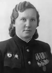 Mariya Ilyichina Tolstova (Russian: Мария Ильинична Толстова; 15 May 1918 – 8 January 2004) was a flight commander in the 175th Guards Attack Aviation Regiment, and one of the few women to fly the Il-2.[1][2][3]