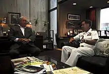 From 1989 to 1992, he served as the reactor officer on board USS Dwight D. Eisenhower (CVN-69). During his tour, the ship participated in Operation Desert Storm and deployed to the United States European Command area of operations.[5] Following this tour, he reported to the Department of the Navy Office of Legislative Affairs in Washington, D.C., as the officer responsible for readiness and surface warfare programs.[5]