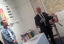 ![]() Ovenden poses with three recent works | |