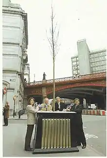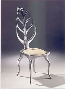 Reed launched his nature inspired range of furniture in 1999 at Decorex, London[2] and it was at this time that Derek Pullen, Head of Sculpture Conservation, Tate Collections described Reed's Leaf Chair in cast aluminium as "a very well resolved and elegant design." In 2002 Mark made Penshurst Dining Table for Fortnum & Mason, London.[3] During this period he worked mainly within the sphere of furniture and interior design, but then turned his attention to sculpture, setting up a foundry in his studio and thus began casting his own bronzes.[4] His initial sculptures explored his fascination with nature and he quickly became known for his tree sculptures in forged steel, the individual branches are heated in the forge and then tapered on the anvil, so the fluid shape of the tree begins to 'grow'. On the birth of his first son in 2004 Reed's own experiences of family life led to a new direction in his work, with his fork and spoon sculptures in stainless steel.[5] In 2004 he worked on his first public commission- Bronze and Cast Iron Tree Planters for The Prince's Trust and the City of London, unveiled by the Lord Mayor of the City.