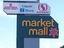 ![]() Market Mall facing East, McEown Avenue entrance. The former Zellers (now Giant Tiger) can be seen in this photo. | |