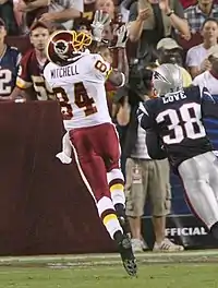 ![]() Mitchell catching a touchdown pass against New England on August 28, 2009 | |||||||