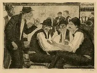 He returned to Corfu in 1911, where he collaborated with the writer, Konstantinos Theotokis in creating the "Socialist Club of Corfu".[1] The following year, he exhibited his works at the Zappeion, and began participating in an artists' society known as the "Fellowship of the Nine". For the remainder of his life, he was a prolific exhibitor; throughout Greece as well as in Paris and Berlin.