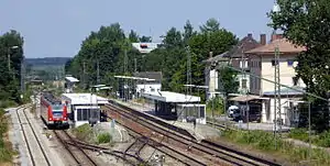 The Munich–Mühldorf railway was taken in operation on 1 May 1871.[5] Subsequently, the municipality of Erding also tried for a railway connection, this could be opened on 16 November 1872.[6] In 1970, the Markt Schwaben–Erding railway and Munich–Mühldorf railway (Munich-Markt Schwaben section) was electrified to introduce a S-Bahn operation on these lines. In 1972, with the establishment of the Munich S-Bahn system, Markt Schwaben was better connected, including by the connection to Munich through the Münchner Verkehrs- und Tarifverbund.[7]