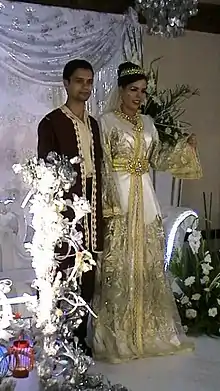 African weddings often consist of modern Islamic/Christian ceremonies whilst intertwining traditional African beliefs and practices. An example of this is the common practice of bridewealth in Africa, particularly among the Zulu people. Bridewealth is when a groom's family pays the bride's family in traditional forms such as livestock, food and clothing to confirm the marriage. In modern practice, the payment is typically in forms of cash. To many Africans, bridewealth is considered to be a crucial part of a marriage ceremony and the marriage will not be acknowledged until the bridewealth has been paid.[6] While this is not a custom of Islamic or Christian marriage, many Africans adopt the traditional practice into their communities creating a strong link between their primary religion and their traditional and cultural beliefs. Enormous economic growth within the continent has caused the bridewealth payment to inflate so significantly that many couples are now straying from the tradition, instead opting for other forms of marriage.[7] The amount of bridewealth that a family is able to pay serves as an icon of her family's social status and indicates how much the family will be able to support the groom's. Bridewealth is seen as a form of “insurance” for the bride's family, as they know that if economic hardship entails they are able to rely on the groom's family to care of them. Some academics believe bridewealth leads to marriage stability, as the bride's family will put pressure on the daughter to remain in the marriage if the payment made was of significant value.[8] In contrast to this practice, other African communities such as many Moroccan ethnic groups participate in a marital custom known as “dowry”. This is where the bride inherits gifts from her family with the purpose of using them within her new home.