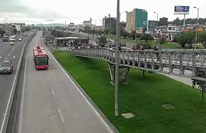 The simple station Marsella is part of the TransMilenio mass-transit system of Bogotá, Colombia, which opened in the year 2000.