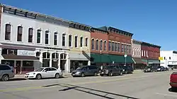 The Marshall Business Historic District is a historic district located in downtown Marshall, Illinois. The district encompasses the city's historic commercial center and includes 56 buildings and structures, 46 of which are contributing buildings. Marshall's courthouse square is a central feature of the district; the square includes the Italian Renaissance Revival Clark County Courthouse, which was built in 1903. The other buildings in the district, mainly commercial and government buildings, were built from the 1830s to the 1960s; however, most of the buildings were built between 1870 and 1910, Marshall's largest growth period. The buildings from this era are mostly designed in the Italianate, Romanesque, and Italian Renaissance Revival styles.[2]