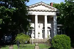 The Marshall House is a historic house at 2009 Arch Street in Little Rock, Arkansas. It is a two-story wood-frame house, covered by a hip roof with extended eaves showing exposed rafter ends. A temple-front portico projects from the center of the main facade, with massive fluted Doric columns supporting a fully pedimented and modillioned gable. It was built in 1908, from designs by Charles L. Thompson.[2]