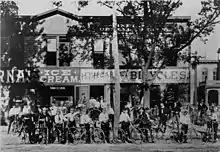 The Southards provided Taylor with his first bicycle. By 1891 or early 1892, he had become such an expert trick rider that Tom Hay, an Indianapolis bicycle shop owner, hired him to perform bicycle stunts in front of the Hay and Willits bicycle shop. Taylor earned $6 a week for cleaning the shop and performing the stunts, plus a free bicycle worth $35.[8][3][11] It is likely that Taylor received his nickname of "Major" because he performed the cycling stunts wearing a military uniform.[8][lower-alpha 1]