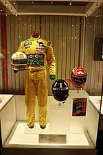 His Formula One career began with the Tyrrell Racing Organisation in 1984.[5] He put in a number of aggressive and fast drives, finishing fifth in his first race in Brazil and then second in Detroit before being disqualified.[5] At the 1984 Dallas Grand Prix Brundle broke his ankles and both feet in a crash during a practice session,[4] and was forced to miss the rest of the season while he recuperated; the severity of the damage to Brundle's left ankle initially led doctors to consider amputating his left foot. While Brundle did recover, the damage would leave him with permanent injuries, preventing him from running and left-foot braking.[6] Later in the year Tyrrell were disqualified from the World Championship due to a technical infringement and Brundle's achievements for that season were wiped from the record books.