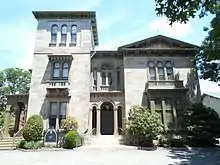 The house was built in 1850 by architect Thomas Alexander Tefft in an Italian Villa style for Chief Justice Charles S. Bradley, a successful attorney who served on the Rhode Island Supreme Court.[2] In 1926, the house and properties were purchased by Providence College. The house was given a wood-framed dormitory addition to its rear, becoming Guzman Hall, the college's first on-campus dormitory. It continued to be a dormitory, housing pre-ecclesiastical students, until 1962, when a new Guzman Hall was opened on land formerly included in the Good Shepherd property, which had been purchased by the college in 1955. At that time, the house was remodeled to its original configuration and renamed for Saint Martin de Porres. Until 1994 the house was used as the house of the President of Providence College, at which time St. Dominic House, another house which was a part of the Good Shepherd property, became the President's residence. (This was done because the new president, Rev. Philip A. Smith, O.P., had previously lived in St. Dominic House and did not want to move.) After serving several years as a Dominican residence (like St. Dominic House had before), the house was used as the college's Office for Institutional Advancement, and is now home to the College's Mission and Ministry, as well as Information Technology.[3]