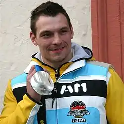 ![]() Martin Putze showing his 2010 silver medal. | ||||||||||||||||||||||||||||||||||||||