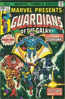 Marvel Presents is notable for giving the original Guardians of the Galaxy their first regular series, from issues #3-12, by Steve Gerber and Al Milgrom[3].Roger Stern replaced Gerber as writer with issue #10.[4] Issue #7 (Nov. 1976) depicted an obvious sex act in a Comics Code-approved comic book, between Vance Astro and Nikki.[5] It presumably made it past the Code because Nikki was outside her physical body and Vance was in the mind of the Topographical Man, a humanoid heavenly body. The series was cancelled with issue #12 (August 1977) due to low sales.[4]