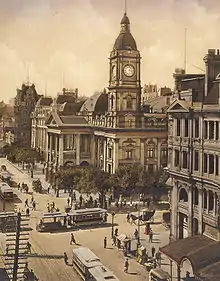 Marvellous Melbourne: Queen City of the South is a black and white silent documentary film about the city of Melbourne in 1910. The film is shot in an observation style, where each scene is divided by a title screen that introduces the next well-known metropolitan Melbourne street and/or building. Such iconography and landmarks that are included in the film are: Swanston street, Melbourne Town Hall, St. Kilda Road, St. Paul's Cathedral, Bourke street, the Central Post office, Elizabeth street, the Exhibition building, Collins street, scenes on the Yarra River and of people playing football. Developed under Spencer's Pictures, the label was renowned for "natural, artistic and realistic display," [3] of the subjects and scenes they were filming. The films locations were shot by Spencer and Higgins over the previous year (1909) to the films release.[4] The film continues to be the oldest surviving film of the city of Melbourne.[5] Produced under Spencer's Pictures, it was likely shot by Ernst Higgins, the main camera operator for the company at the time.[5] This is contested as in the films credits it attributed cinematography to "C. Spencer" not Higgins, although unlikely Spencer was the only cinematographer for the entirety of the film. The film debuted at the Spencer Wirth's Olympia theatre on November 22 in 1910.[3] The theatre that debuted the film was not affiliated with Spencer's Pictures production.
