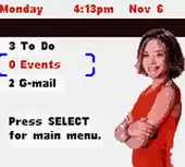 Pocket Planner is a digital planner which allows users to organize their lifestyles.[1] The game features a calendar, stop watch, phone book, and a series of five short minigames that allow the user to get photos of Mary-Kate and Ashley.[2] The game includes a "Crush Tester" which prompts the player to point the Game Boy at their crush which checks if the feelings are reciprocated and a fortune teller.[2][3] The Game Boy Printer can be used to print out photos of Mary-Kate and Ashley that are unlocked by playing the minigames.[1] The player can send G-Mail (presumably, email for girls) between users through the Game Boy Color's infrared port.[1][3][4] Every screen includes at least Mary-Kate or Ashley though at the Game Boy's low resolution.[1]