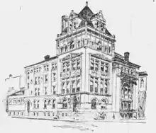 The Mary A. Ripley Memorial Library[7] inside the Women's Educational and Industrial Union of Buffalo was named in Ripley's honor.[8] The room was finished in cherry and was lined on three sides with bookcases. At the farther end was a mantelpiece whose paneling reached to the ceiling, and against this hung a portrait of Ripley by Rudolph Menzel.[9] The library was furnished with leather-covered chairs and a long table. A small reading room was connected with the larger room.[10]