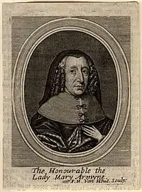 Mary was the daughter of Henry Talbot, fourth son of George Talbot, 6th Earl of Shrewsbury. Her first husband was Thomas Holcroft, Esq.; her second was Sir William Armyne, baronet, of Osgodby, Lincolnshire. Lady Mary's accomplishments included a good knowledge of French and Latin, and wide reading in divinity and history. Her business capacity is applauded at length by her biographer, and her personal beauty and activity, which characterised her old age no less remarkably than her youth, were frequently commented on by her contemporaries.[2]