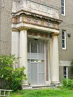 Mary Channing Wister School, originally the Mary Channing Wister Public School, is a historic school building located in the Poplar neighborhood of Philadelphia, Pennsylvania. It was designed by Irwin T. Catharine and built in 1925–1926. It is a three-story, three bay, brick building on a raised basement in the Art Deco-style. An addition was built in 1960. It features a freestanding portico with Doric order columns and decorative tile.[2] It is named for the civic leader Mary Channing Wister, the wife of Owen Wister.
