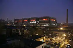 • indestructible language is the large scale neon work on the climate emergency. It was the inaugural commission by the Precipice Alliance in 2006, the first international organization to commission high-profile, large-scale works of art on the subject of global warming.[7] The project intentionally sited and temporarily located at the former American Can Company factory in Jersey City, New Jersey and consists of illuminated characters spelling out: IT IS GREEN THINKS NATURE EVEN IN THE DARK.[8][9] 'indestructible language was installed for the UN's Climate Summit — COP26 in Glasgow and was initially illuminated on Saturday, October 30, 2021, and continues to be daily at sunset on The School House, 101 Portman St, Kinning Park, Glasgow G41 1EJ, UK.