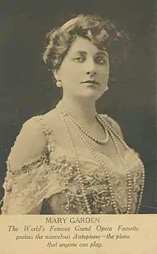Mary Garden (20 February 1874 – 3 January 1967) was a Scottish-born American operatic soprano with a substantial career in France and America in the first third of the 20th century. She spent the latter part of her childhood and youth in the United States and eventually became an American citizen, although she lived in France for many years and eventually retired to Scotland, where she died.[1]