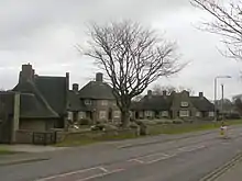 These were built as Almshouses in 1936 for the widows and orphans of miners by the builders Greenwoods of Mansfield. The design by the architect Thomas Cecil Howitt won the RIBA Bronze Medal in 1936 from the Nottingham, Derby and Lincoln Architectural Society.[1]