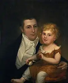Mary Jane Simes was an American portrait painter who worked in both oils and painted miniatures. She was born in Baltimore in 1807 and died in 1872. Mary Jane Simes is a member of the Peale family, an important lineage of artists and cultural workers in 18th and 19th century America. She is a descendant of Charles Willson Peale, who established one of the first museums of art and natural history in the United States.[2] Her aunts were Anna Claypoole Peale and Sarah Miriam Peale, who were known as miniaturists and oil painters, respectively.[3] Simes lived with her aunt Sarah during a portion of her childhood. Her career as an exhibiting artist ended upon marriage to John Floyd Yeats.[4]