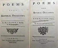 ![]() Title page, Poems Upon Several Occasions (1748) by Mary Leapor | |