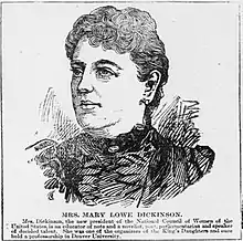 Mary Lowe Dickinson (née Mary Caroline Underwood, January 23, 1839 – June 1914) was a 19th- and early 20th-century American fiction writer, poet, editor, and educator who also became an advocate for women's rights and anti-war activist.[1][2][3]