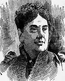 Shortly thereafter, she began work as head of a Brooklyn school's department of literature and composition, but then resigned that position in favor of work as a private tutor.[26] During this time, she entered a period of her life throughout which she battled serious financial hardships. Multiple biographers and newspapers have documented that, two years after being widowed, the fortune she had inherited from her late husband was gone. Howard J. Banker described her savings as "suddenly swept away." The contacts she had built as an educator and advocate for women, however, helped her survive. According to Banker, "She was offered important positions in Wellesley, Northwestern University, Vassar, the University of Denver, and the University of Southern California." In 1888, she chose to become "the Chair of Literature in the University of Denver, where she labored for two years with such zeal and earnestness that her health became impaired and she was compelled to retire."[27] According to The Gazette of Fort Worth, Texas, she was paid “the same salary as a man in a corresponding position” during her time there.[28][29][30]