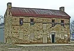The oldest of Governor Worthington's daughters was Mary, who was born in 1797.[3] Although Mary and her family lived in the grand Adena Mansion on Chillicothe's northern side,[4] she chose to marry lower in society circa 1816. Her new husband, David Macomb, was a member of a prominent local family, but his poor management of their property forced them into debt, and they settled in the southern United States, where Mary died while moving to Texas in 1836.[3] Before moving southward, the Macombs resided in the present two-story house, which is built primarily of large blocks of sandstone.[2]