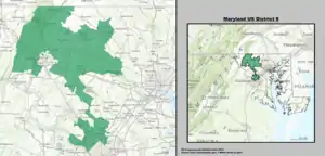 Maryland's 8th congressional district stretches from the northern Washington, D. C., suburbs north to the Pennsylvania border. The district is currently represented by Democrat Jamie Raskin.