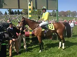 The Maryland Hunt Cup is a Timber race, which is an American Steeplechase. It was first run on May 26[1] 1894[2] and won by Johnny Miller. Eight horses have won the race three times but no horse has won it four times.[3] It is considered one of the most difficult steeplechase races in the world.[4] Fred Winter, a famous English horse trainer who attended Jay Trump's 1966 race, was asked about bringing a horse over for the Maryland Hunt Cup, he responded "Why I wouldn't dare!"[5] Two undefeated winners, Jay Trump (1963, 1964 and 1966) and Ben Nevis II (1977, 1978), went on to win the Grand National in England. Both horses are in the Hall of Fame.