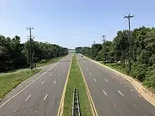 Between 1962 and 1964, MD 193 was extended east as a four-lane divided highway from College Park along MD 430 and the remainder of Greenbelt Road to Glenn Dale.[8][17] The state highway then headed south along Glenn Dale Road (former MD 199) to MD 450, then south along the part of Glenn Dale Road that had never been state-maintained to an intersection with MD 556 just north of the US 50 freeway.[17] MD 193 was expanded to six lanes between MD 430 and just east of MD 201 in 1988, when the MD 201 interchange was completed.[8] The six lane section was extended to the east edge of Greenbelt in 1994.[8]