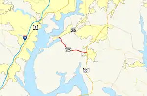 ![]() Map of Southern Maryland with MD 225 highlighted in red | ||||