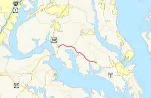 Maryland Route 234 (MD 234) is a state highway in the U.S. state of Maryland. Known as Budds Creek Road, the state highway runs 19.02 miles (30.61 km) from U.S. Route 301 (US 301) in Allens Fresh east to MD 5 in Leonardtown. MD 234 is the primary east–west highway of southern Charles County and western St. Mary's County, connecting the St. Mary's County seat of Leonardtown and the communities of Clements, Chaptico, Budds Creek, Wicomico, and Newport with US 301, which heads north to La Plata, the county seat of Charles County, and south to the Governor Harry W. Nice Memorial Bridge over the Potomac River.
