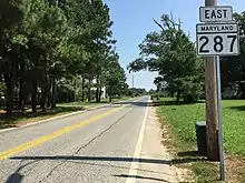 Maryland Route 287 (MD 287) is a state highway in the U.S. state of Maryland. Known for much of its length as Sandtown Road, the state highway runs 2.88 miles (4.63 km) from MD 313 in Goldsboro east to the Delaware state line, where the highway continues east as Delaware Route 10 (DE 10). MD 287 was constructed in the early 1930s.