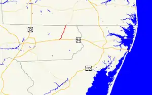 MD 353 was constructed as a modern highway beginning in 1925 from Pittsville.[3] By 1927, the highway extended north to Burnt Mill Branch.[4] MD 353 was completed to the Delaware state line in 1929.[5][6] On April 20, 2016, the portion of Sixty Foot Road between US 50 and MD 346 was transferred from county and town maintenance to state maintenance and became a southern extension of MD 353.[1]