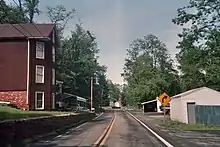 As the road enters Lonaconing, it narrows and passes through the town as Main Street, intersecting Douglas Avenue near the center of Lonaconing.[1] Along Main Street in Lonaconing is the Lonaconing Iron Furnace, a historic blast furnace which operated in the early 19th century.[4]