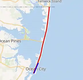 The entire route is in Ocean City, Worcester County.