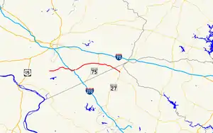 | 10.29 | 16.56 | East end of MD 75 concurrency | |||