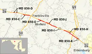 - MD 850K runs 0.05 miles (0.080 km) from MD 850H in Eldersburg, just south of the latter route's eastern terminus at MD 26, east to a dead end.[1]