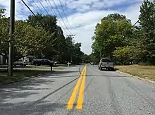 The two segments of MD 983 were part of the old alignment of MD 216, which crossed the Patuxent River on a bridge at Ninth Street in Laurel.[4] The highway was constructed as a gravel road from Laurel to Scaggsville in 1923; that road was paved in 1956.[5][6] MD 216's present bridge across the river at Seventh Street was built in 1960.[7] The highway was relocated to its present alignment from Main Street in Laurel to the site of the I-95 interchange in 1963, leaving behind much of what is now MD 983.[8] The interchange was built in 1970 and 1971.[9][10] MD 216 was moved to its present alignment from the interchange west to Leishear Road between then and 1978, leaving behind MD 983A.[11] The Patuxent River crossing at Ninth Street was removed, resulting in MD 983's present dead end at the river, in 1985.[12] MD 983A connected directly with MD 216 at the Leishear Road intersection until MD 216 was relocated to its present course between Leishear Road and U.S. Route 29 in 2005.[13] On February 2, 2017, MD 983 and MD 983A were removed from the state highway system and transferred to county maintenance.[14]