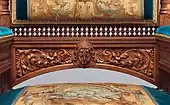 In architecture, a mascaron ornament is a face, usually human, sometimes frightening or chimeric whose alleged function was originally to frighten away evil spirits so that they would not enter the building.[1] The concept was subsequently adapted to become a purely decorative element. The most recent architectural styles to extensively employ mascarons were Beaux Arts and Art Nouveau.[2][3] In addition to architecture, mascarons are used in the other applied arts.