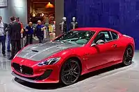 In September 2010, Maserati announced plans to unveil a new version of the GranTurismo - the MC Stradale - at the 2010 Paris Motor Show. The strictly two-seat MC Stradale is more powerful than the GranTurismo at 450 PS (331 kW; 444 hp), friction reduction accounts for the increase, says Maserati, due to the strategic use of “diamond-like coating", an antifriction technology derived from Formula 1, on wear parts such as the cams and followers. It is also 110 kg lighter (1,670 kg dry weight) from the GranTurismo, and more aerodynamic than any previous GranTurismo model - all with the same fuel consumption as the regular GranTurismo.[13] In addition to two air intakes in the bonnet, the MC Stradale also receives a new front splitter and rear air dam for better aerodynamics, downforce, and improved cooling of carbon-ceramic brakes and engine. The body modifications make the car 48 mm (2 in) longer.[14]