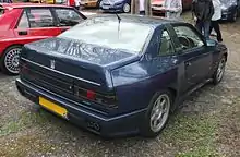 The Shamal was designed in collaboration by Marcello Gandini and Maserati's own Styling department.[9] A debt ridden Maserati was not able to develop an entirely new car, and accordingly the Shamal shows its Biturbo heritage in the doors, interior, and basic bodyshell, which were carried over from the Biturbo.[6] It sits on the shorter 2.4-meter wheelbase, as also used by the Biturbo Spyder and Karif.[6] Gandini's styling signature is visible in the slanted profile of the rear wheel arch, also present on the Quattroporte IV and first seen on the Lamborghini Countach. An unusual design element introduced by Gandini on the Shamal was the additional spoiler in front of the windshield, also seen on his redesign of the DeTomaso Pantera and later across the remainder of Maserati's Biturbo-based lineup. It was intended to direct the flow of air (as well as water) across the windscreen and to push the wipers down at high speeds.[10] The feature was never adapted by other automakers.