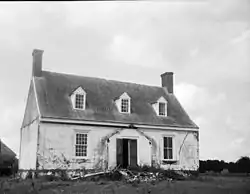 Mason House, also known as the Hinman-Mason House, is an historic dwelling located at Guilford in Accomack County, Virginia.[3] Trees were cut for its construction in the winter of 1729/30 and construction likely started soon thereafter.[4] The house is a single story, single-pile, three-bay, brick structure. The mason hired to construct it laid its brickwork in an extraordinary fashion, which reflects its early date. He set glazed brick headers in large chevron patterns in recessed panels between the front windows and door. He seemed also to have raised the chimneys as exterior features, but they were demolished and rebuilt as interior stacks in the 19th century. To date no archaeological evidence for their original form have been found.