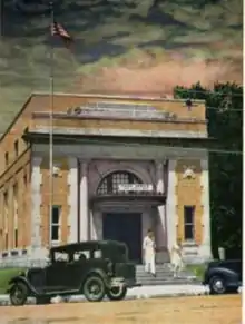 In the late 1990s, the renovated building reopened as a coffee and pastry shop known as "The Old Bank," with the old built-in safe still intact.[10][5] In 2001, the shop was renamed "Bankhouse Coffee" and has been operated under that name since that time by Shawn Montella.[11] The proprietors of the coffee shop also roast their own coffees in a 1906 Royal Roaster at the shop.[12][13] The coffees roasted at the site are sold commercially under the brand name "Coast Roast."[14]