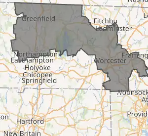 The shape of the district was changed for the elections of 2012, after Massachusetts congressional redistricting to reflect the 2010 census.[3] The new district covers central Massachusetts, including much of Worcester County, and is largely the successor to the old 3rd District. Most of the old 2nd district, including Springfield, has been moved into the new 1st district.