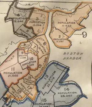1963: Boston (Wards 4- 17, 19, 20).[9]